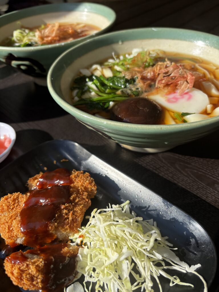 ご飯の量を少なめにしたけどそれでもお腹いっぱいになっちゃったので、お持ち帰りようのパックをもらって宿に持ち帰りました()