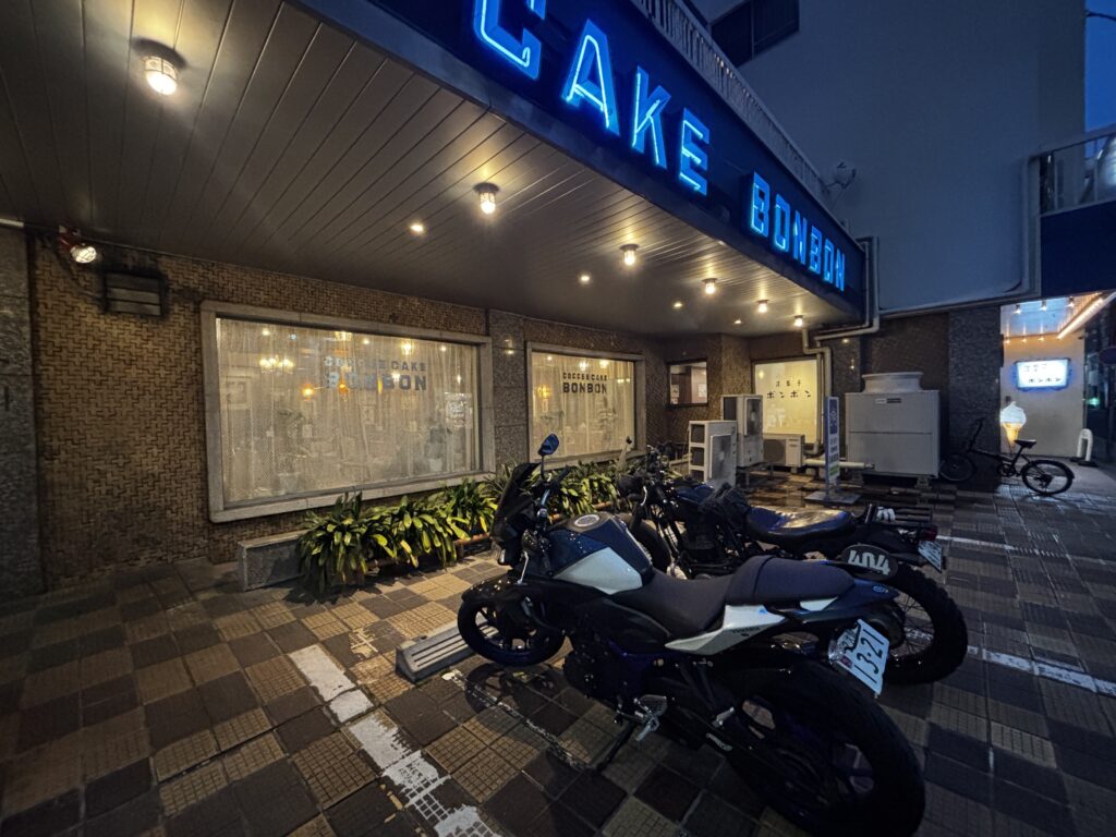 お店の前に2台と、すぐ目と鼻の先にも別で駐車場があるので車やバイクでも訪問しやすい洋菓子店兼茶店です。