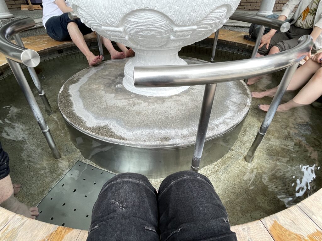 ここら辺の足湯では一番熱いレベルのお湯らしい。皮膚の脂が一瞬で消し飛んでサラッサラになりました。
